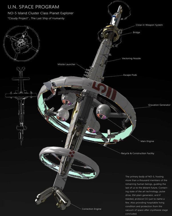 For now it would need only to be a frame with engines, a life ring, and a control pod in the front, as well as food, water and fuel tanks, as well as a waste processing center.