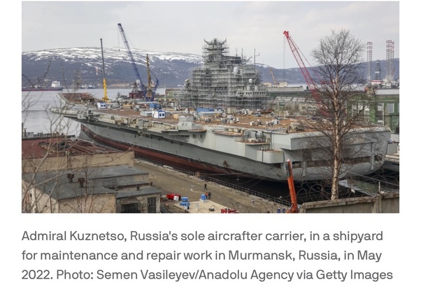 In any event, the Russian navy has already beaten the Americans in the shipyard category by having 100 percent of its aircraft carrier fleet out of action at the same time, since the AK is the only carrier it has.
