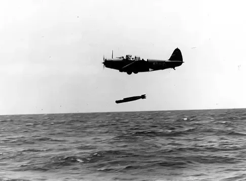 While that was going on, the US carriers had already launched their own aircraft against the Japanese fleet. Devastator torpedo bombers – slow aircraft that had to fly low, steady, and straight, in order to launch their torpedoes – got there first.