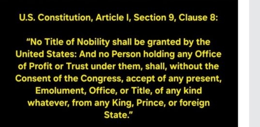 There is no “Sir Donald Trump.” Even if a foreign power offered that fat pig a knighthood, accepting it would be a clear violation of the Constitution’s Emoluments clause.