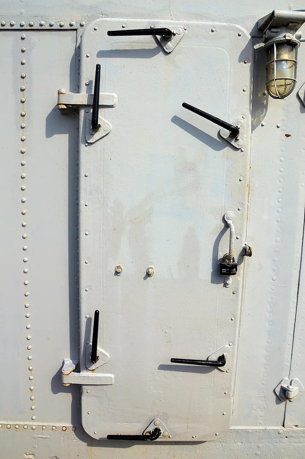 This is a fairly typical watertight door on a ship, albeit evidently quite an old ship and one which hasn’t been maintained to the highest standards.