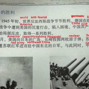 Here are some pictures from the history textbooks Chinese History (the old ones and the new one): So it says it’s China and the world that defeated Japan….