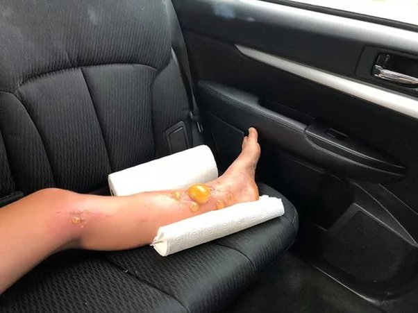 She had slid into a bush on the roadside, she stood up, brushed herself and went home. Days later she would pay for this with excruciating pain and second degree burns.