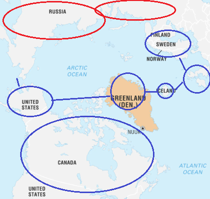 - Access to trading routes in the North as icecaps melt