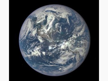 This one is from NASA, released in 2015, a single photographic image from the Deep Space Climate Observatory (DSCOVR), marking the first full-disk Earth image released by the space agency since the Apollo era.